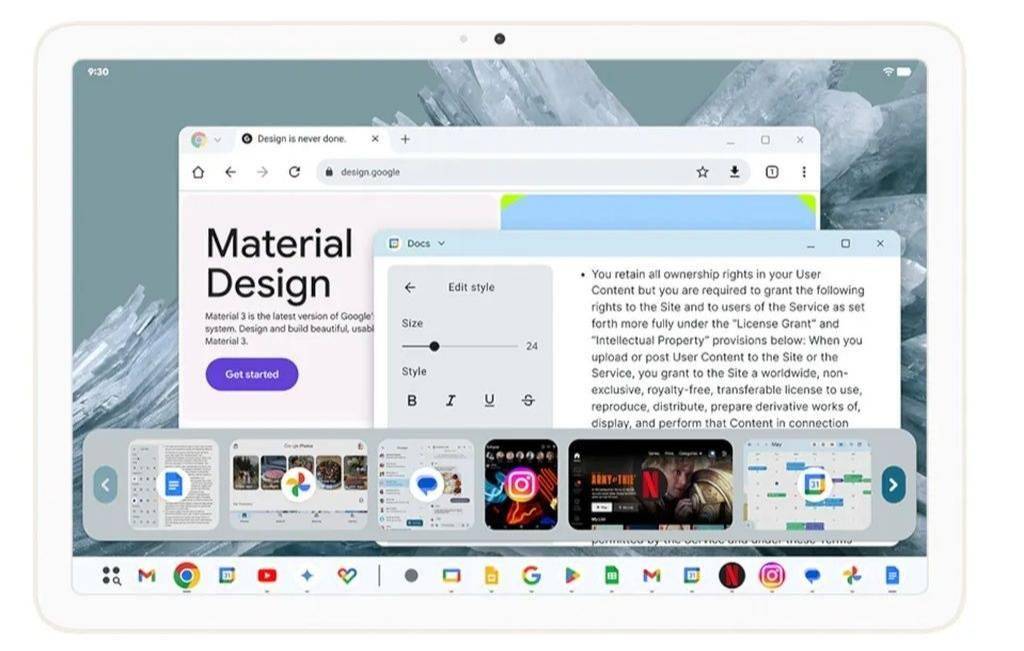 谷歌进一步解释说,在应用窗口、内容和鼠标光标方面,用户可以在两个屏幕之间自由移动,这一特性极大地增强了操作的灵活性。此次更新还增添了自定义键盘快捷键和任务栏溢出功能。当任务栏上的应用过多时,系统会智能地弹出一个轮播菜单,使用户能够快速切换所需应用。